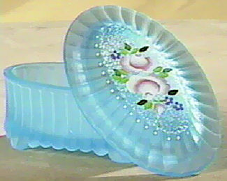 Fenton Ice Blue Satin Handpainted Vulcan Candy Box C60638 / C9551 QO$ 55 -