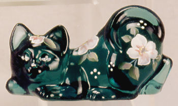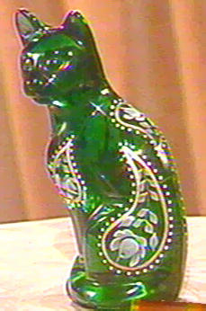Fenton Emerald Green Handpainted Stylized Cat Figurine C60645 / C5065 D4$ 37.5 -