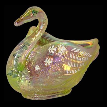 Fenton Emerald Green Carnival Handpainted Open Swan Figurine C76706 / C5127 K4$ 29.75 -