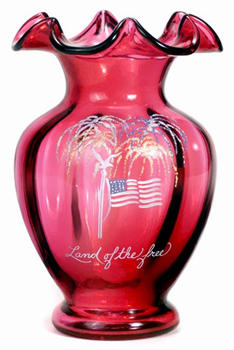 Fenton Cranberry Handpainted Patriotic Vase C125288 / I1573 HP$ 79 -