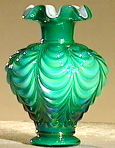 Fenton Emerald Green Overlay Iridized Drapery Vase C67613 / C6490 E9$ 55 -