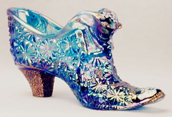 Fenton Turquoise Iridized Hnadpainted Daisy and Button Slipper C67873 / C1995 JB$ 22.5 -