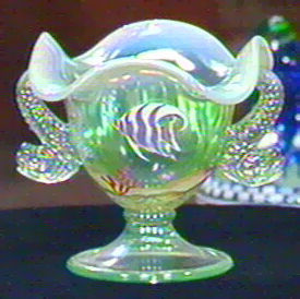 Fenton Willow Green Opalescent Handpainted Dolphin Comport C60662 / CV094 2A$ 49.75