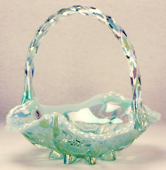 Fenton Willow Green Opalescent Iridized Thistle Basket C58811 / C6838 GY$ 44 -